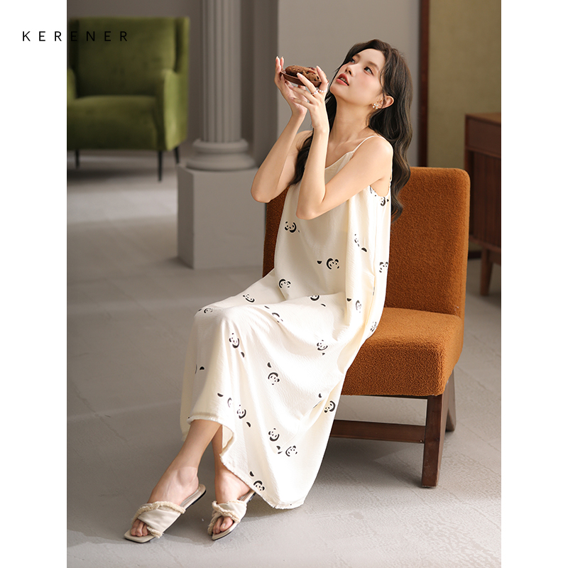可人儿小众设计师新款 吊带少女带胸垫睡裙家居服 泡泡绵睡衣女夏季