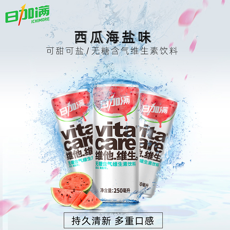 4罐 日加满西瓜海盐口味无糖含气维生素饮料250ml 包邮