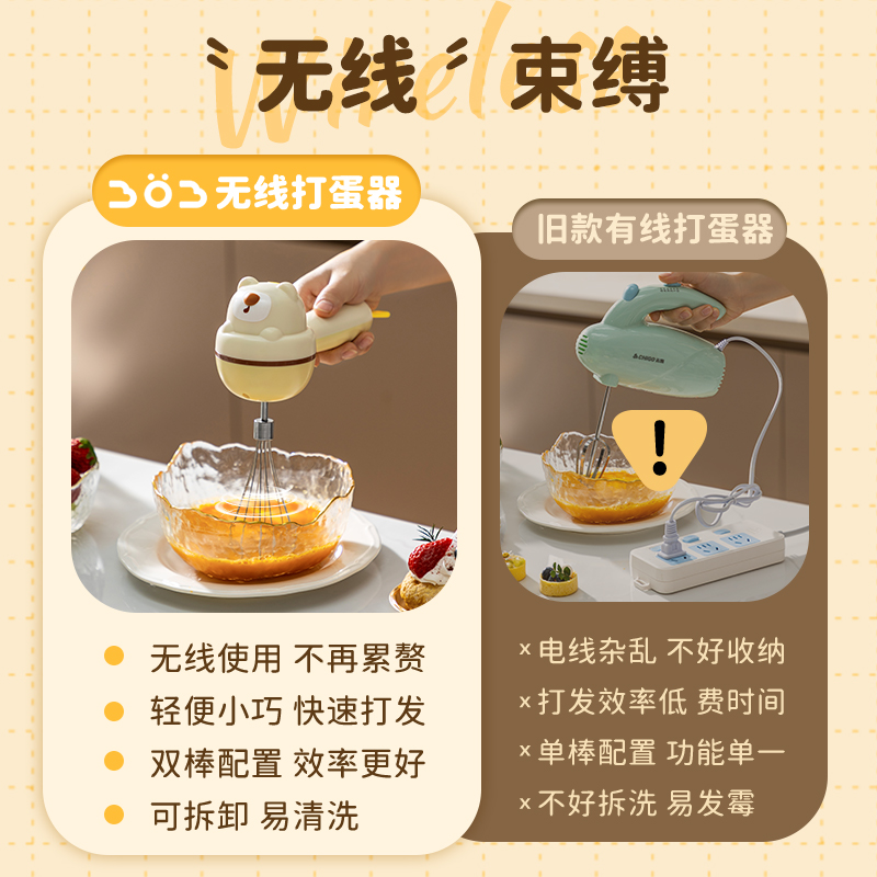 德国电动打蛋器手持小型家用烘培蛋糕奶油打发器无线打蛋机搅拌器