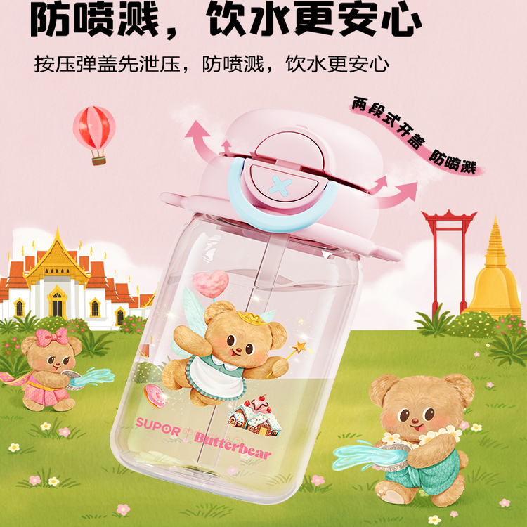 苏泊尔黄油小熊水杯女新款 外出便携耐高温食品级 2025高颜值夏季
