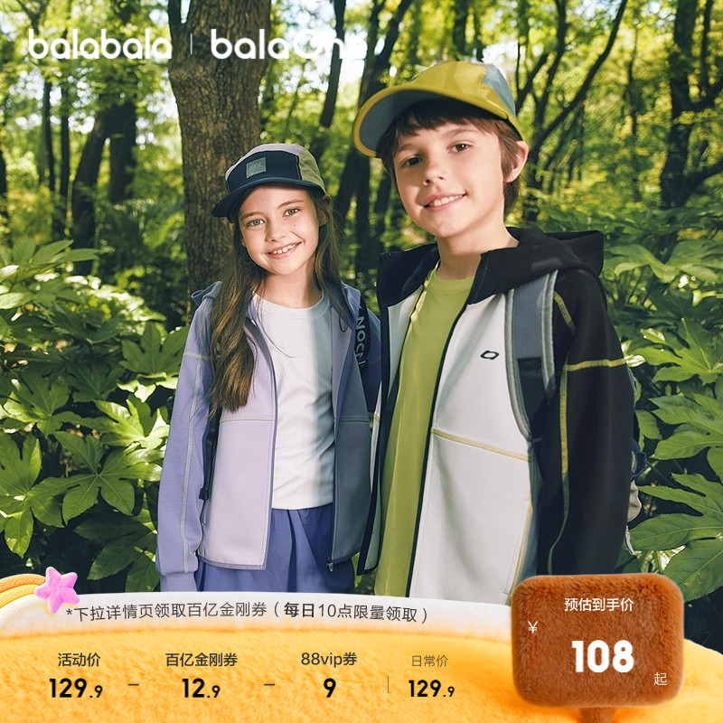 户外吸湿速干运动 秋装 巴拉巴拉童装 儿童外套男童女童上衣2025新款