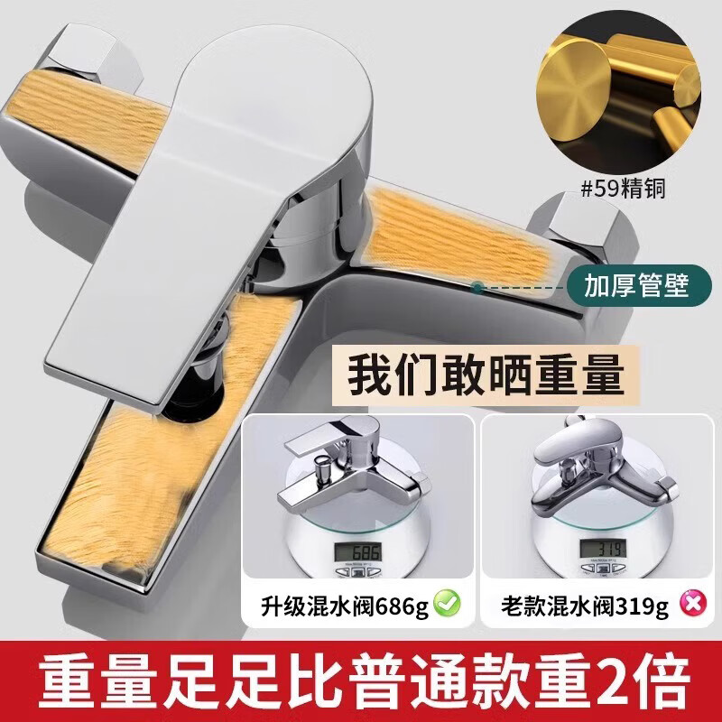 混水阀冷热水龙头淋浴龙头全铜花洒套装 沐浴 喷头开关浴室三联明装