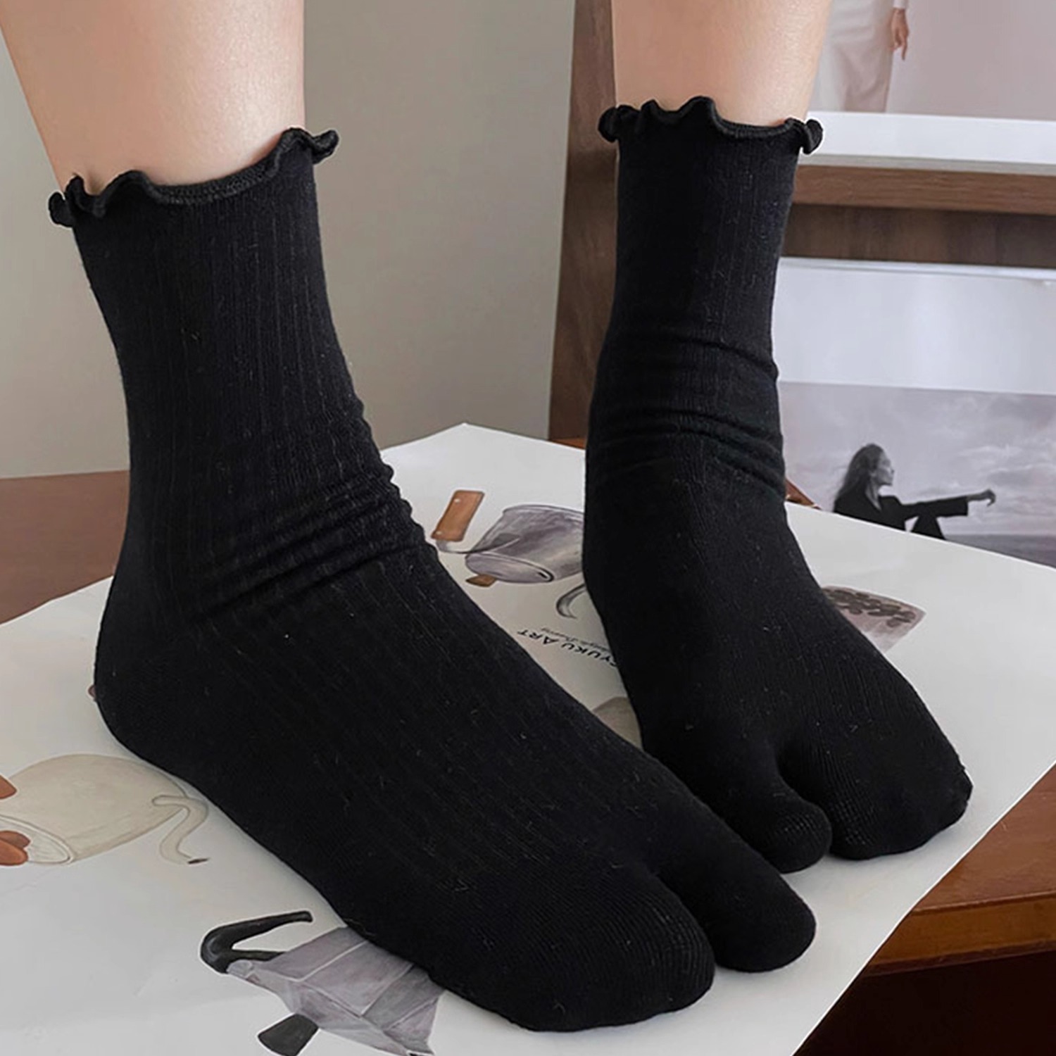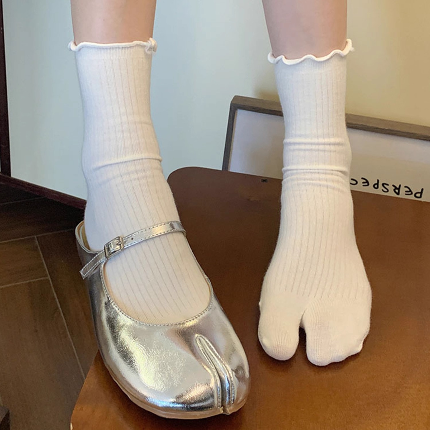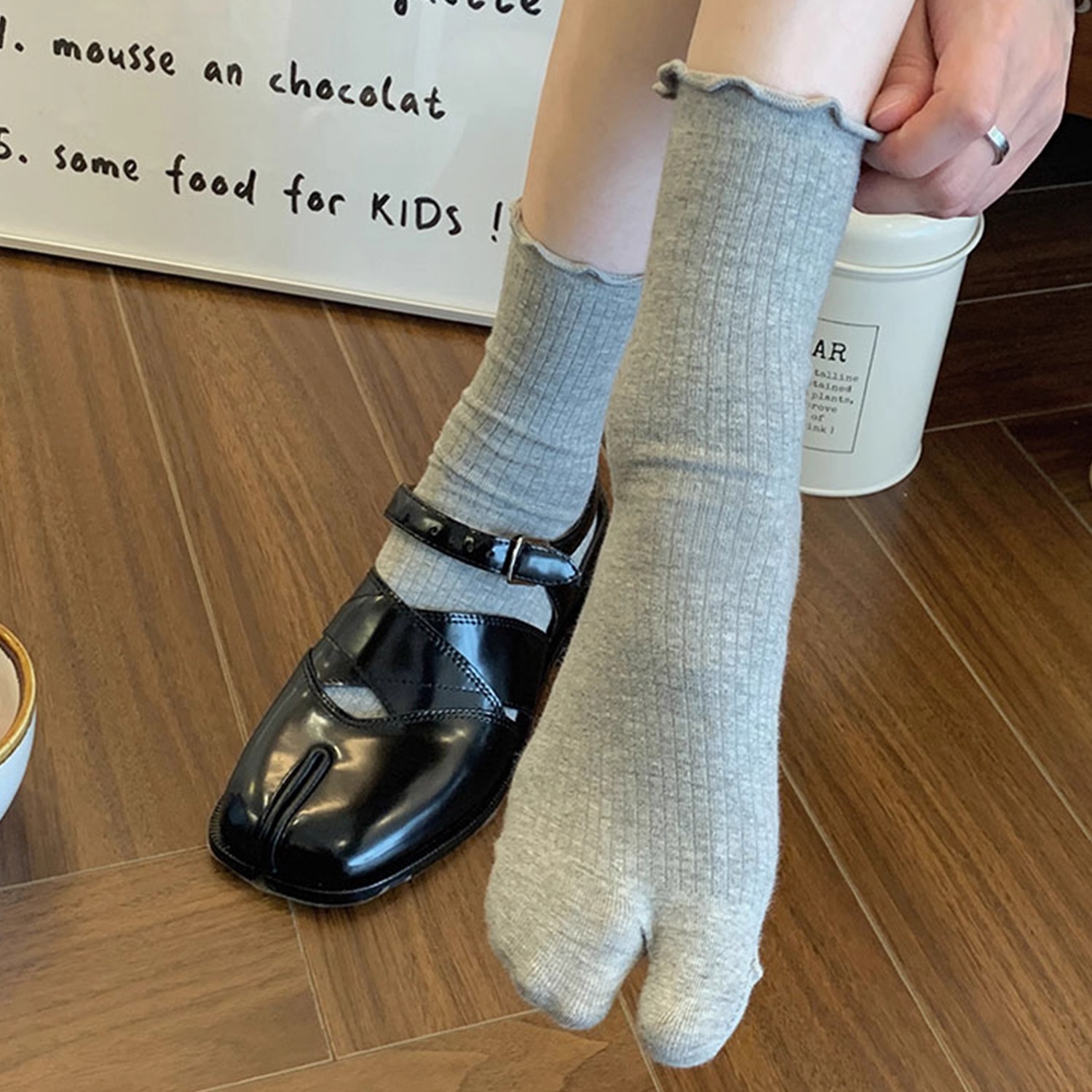 白色分趾袜子女春夏灰色堆堆袜日系中筒袜女潮二趾袜猪蹄袜花边袜