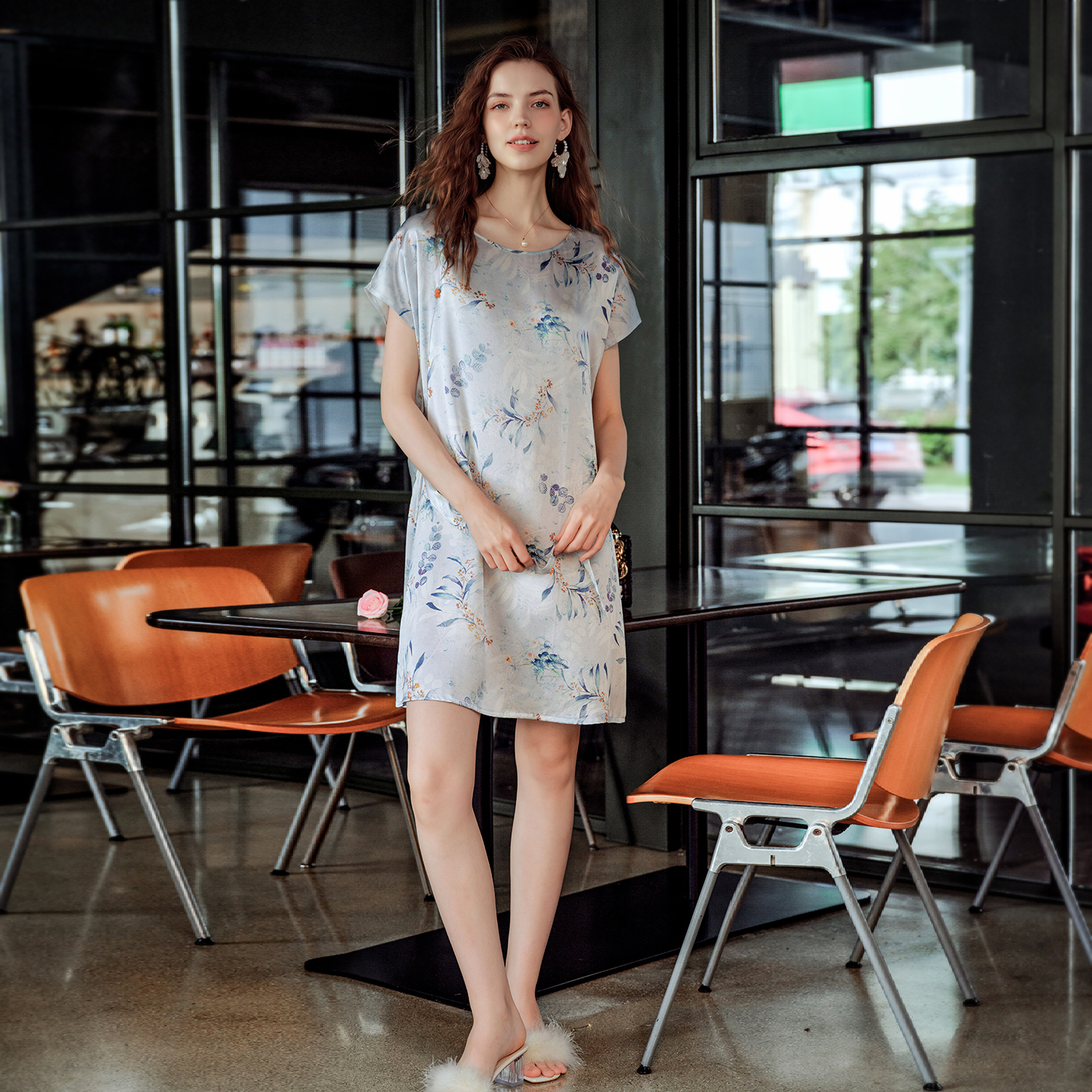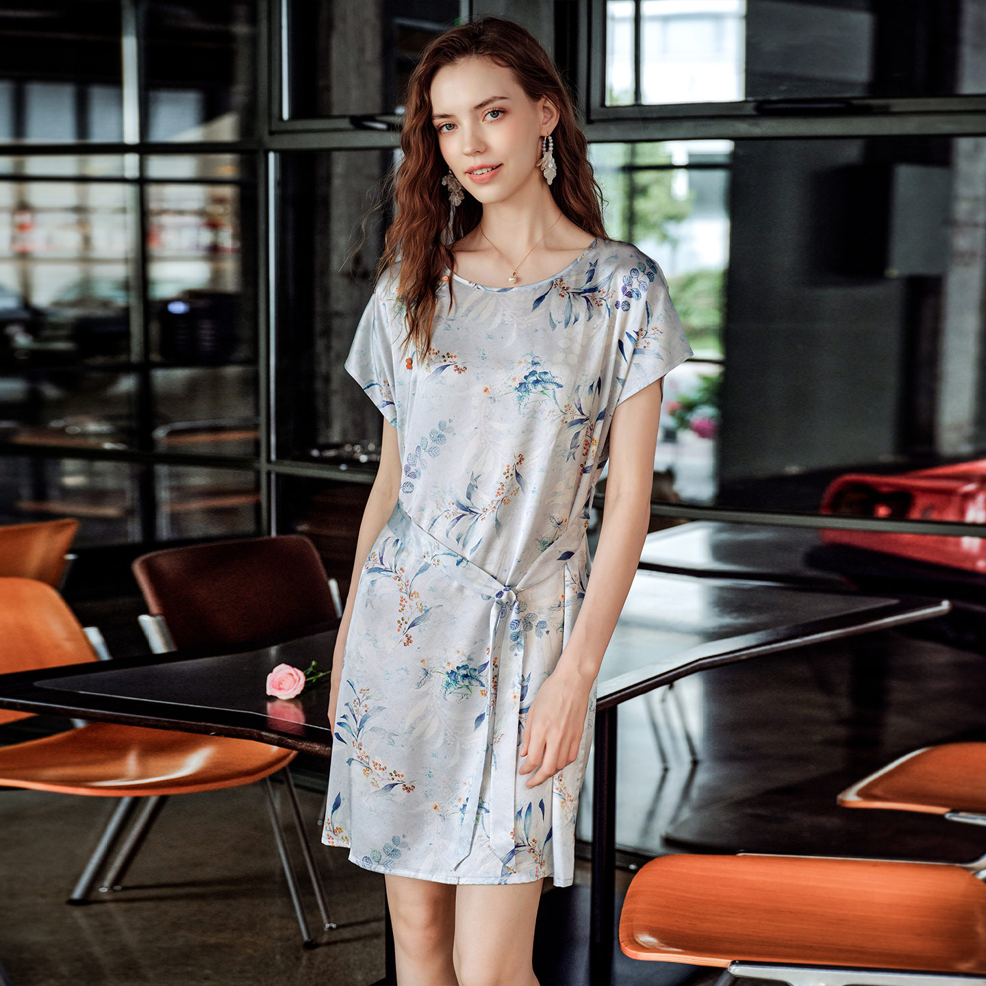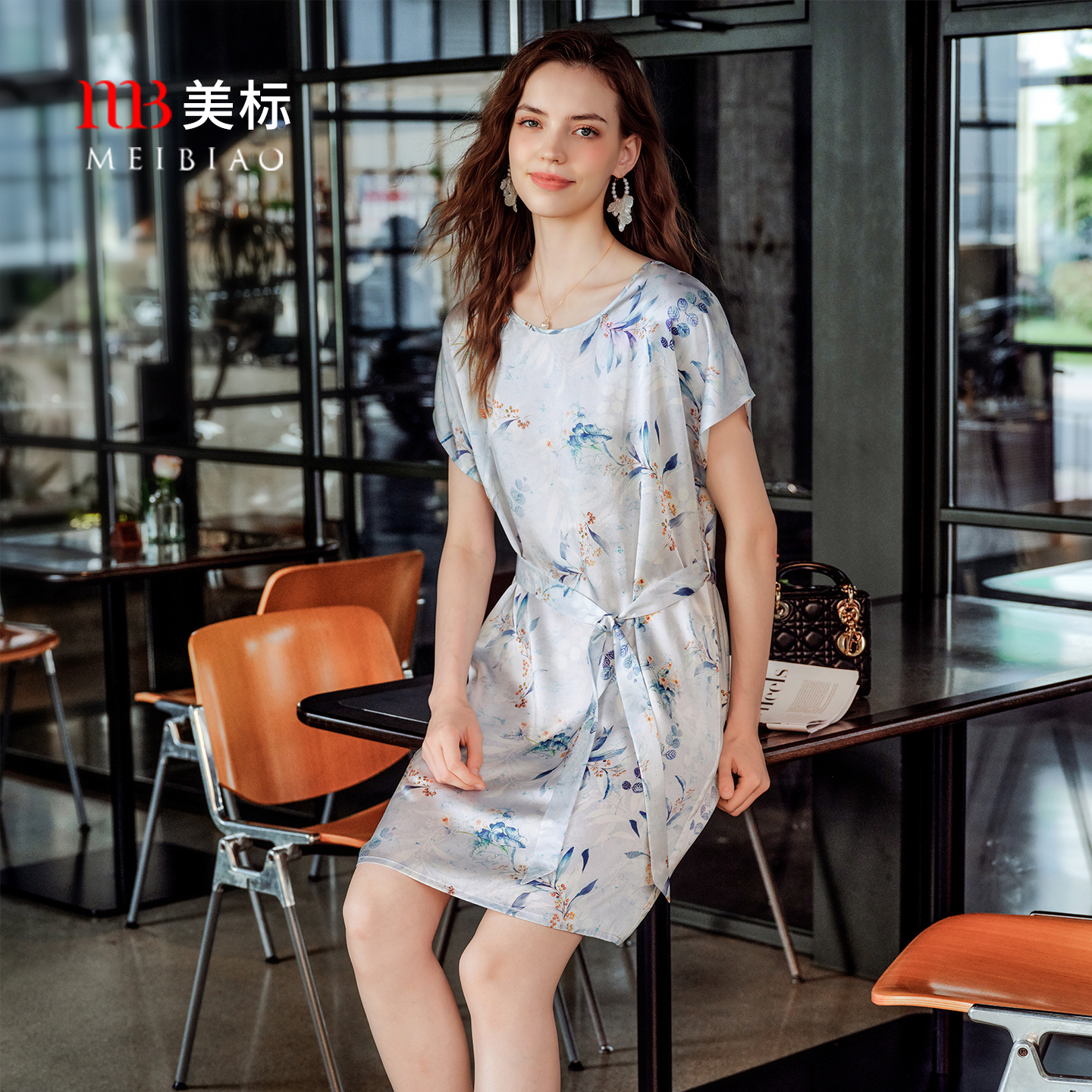 美标新款 性感桑蚕丝睡衣冰氧凉感国风家居服 真丝睡裙女夏薄款