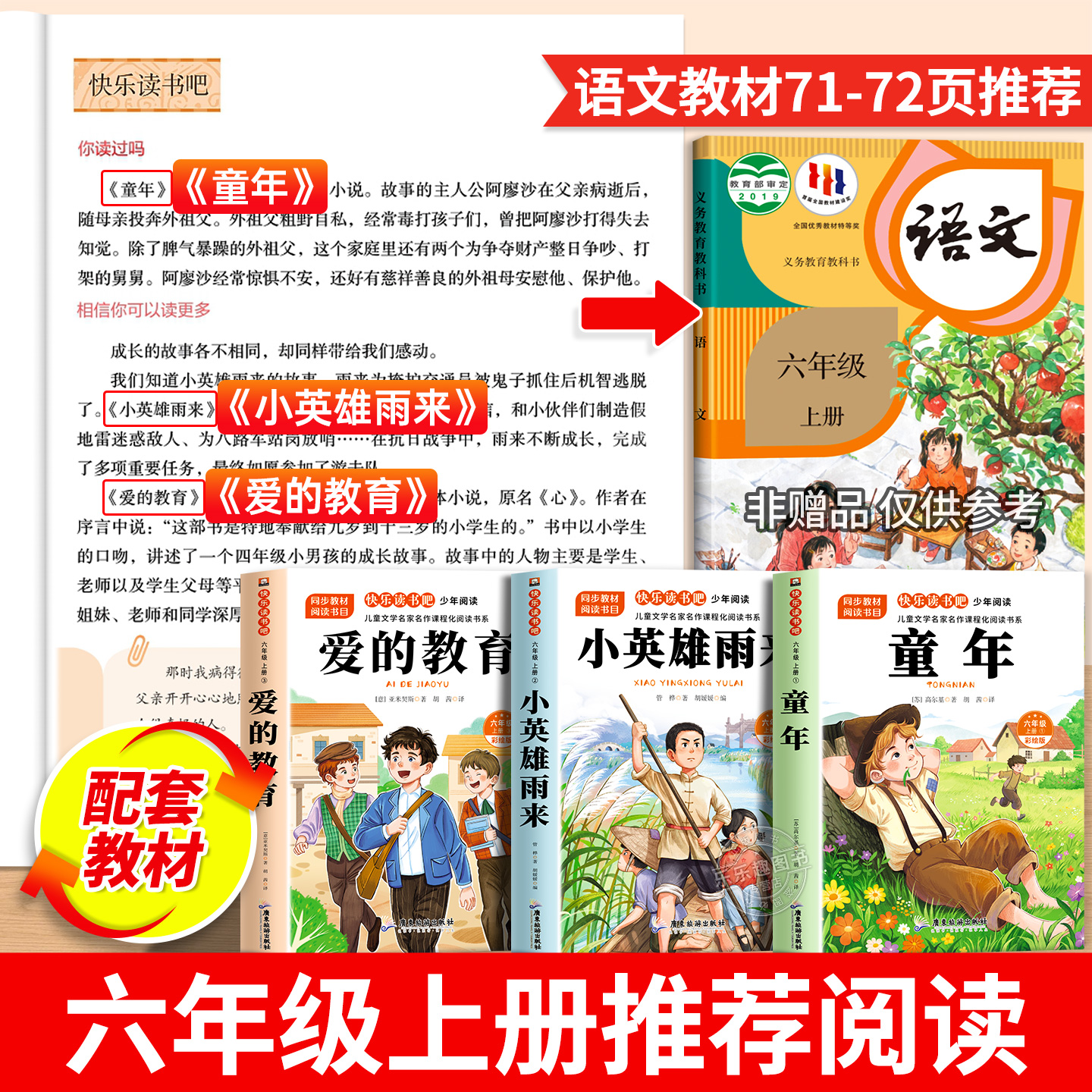六上阅读书籍老师推荐 课外书高尔基原著完整版 6外书目导读童话故事 教育和小英雄雨来必读正版 六年级上册快乐读书吧3册童年爱
