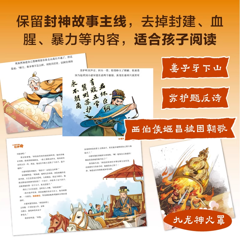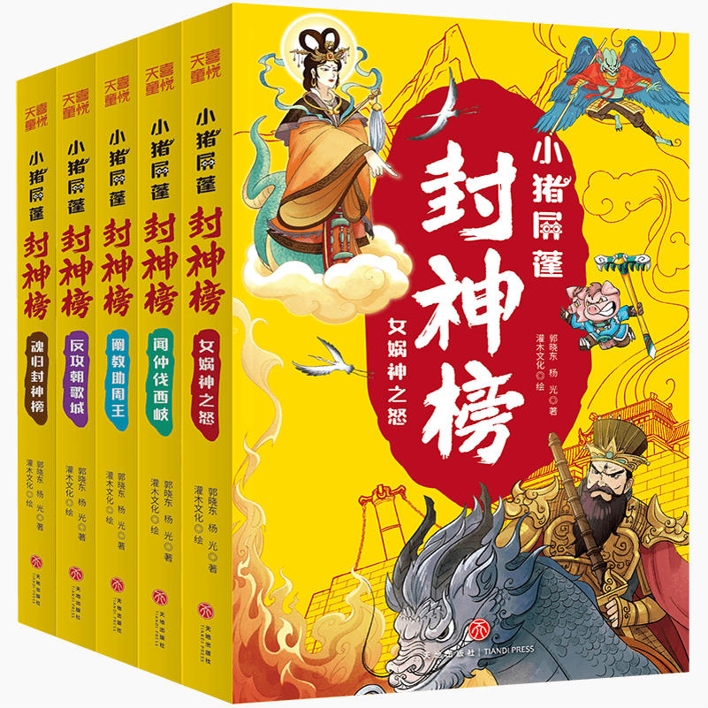 正版 12岁小学生幼儿园神话故事姜子牙西王母哪吒李靖商纣王等趣味奇幻冒险故事校园漫画睡前故事天地出版 小猪屏蓬封神榜全5册6