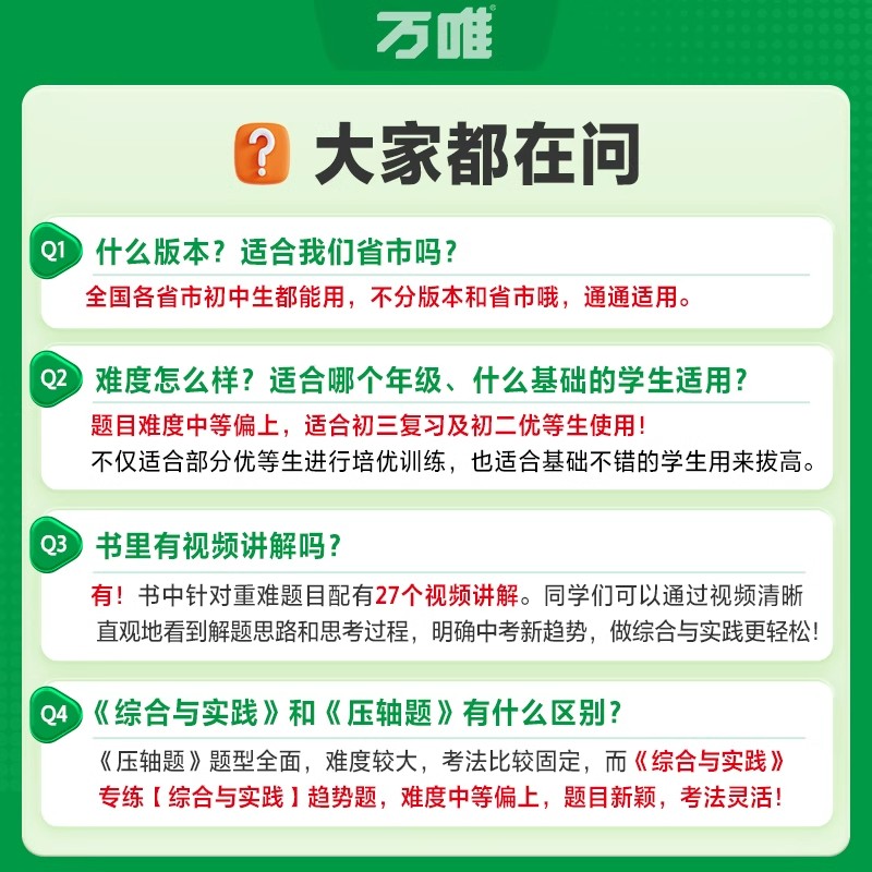 万唯中考2025初中数学综合与实践情境题七八九年级几何模型函数压轴题答题模板解题技巧分类专项训练初三万维中考必刷题总复习资料