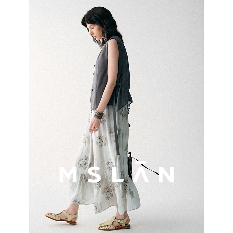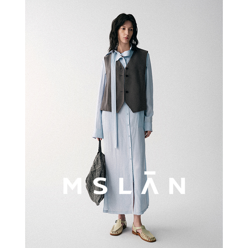 马甲女MGCW318 25秋格雷系V领天丝西装 智性灰调 MSLAN莱赛尔马夹