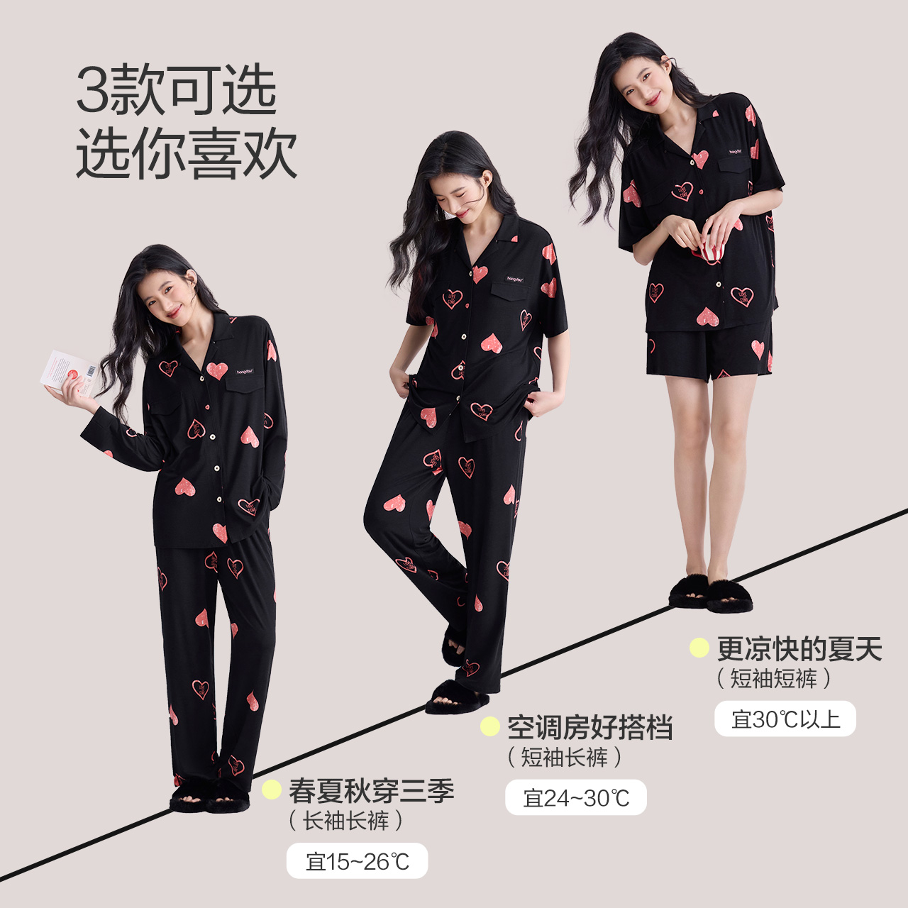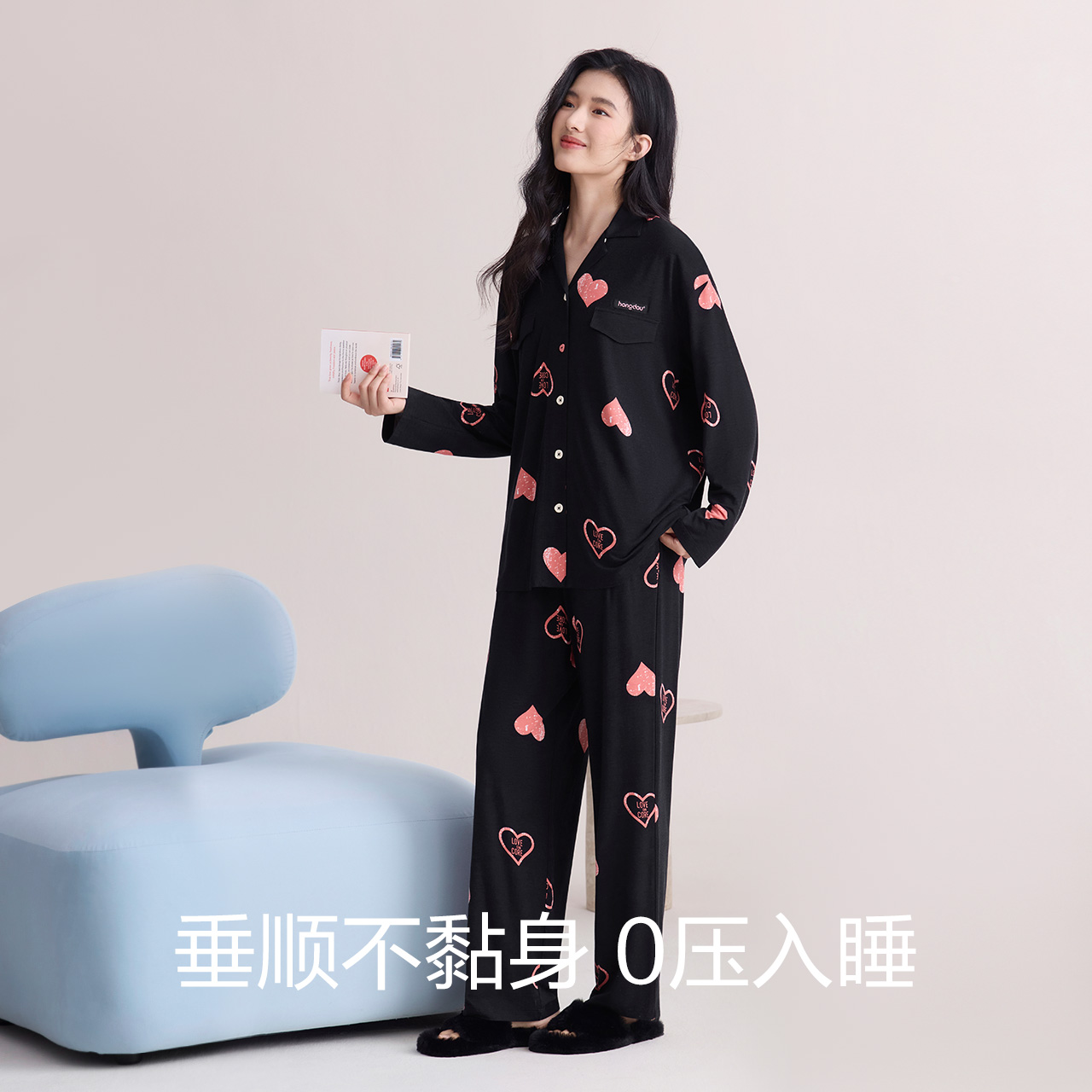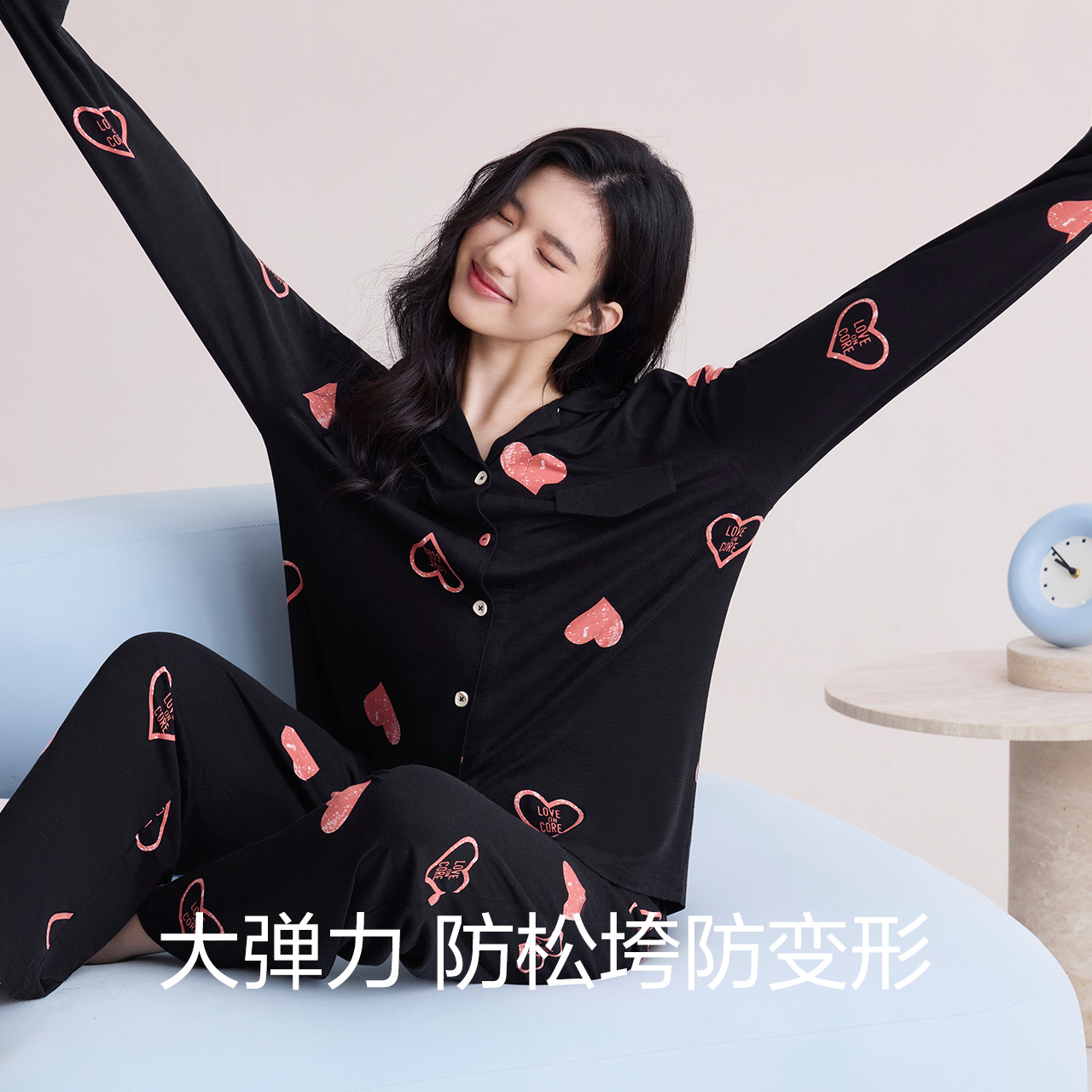 柔软开衫 宽松可外穿套装 夏季 短袖 红豆家居服春秋款 长裤 睡衣女长袖