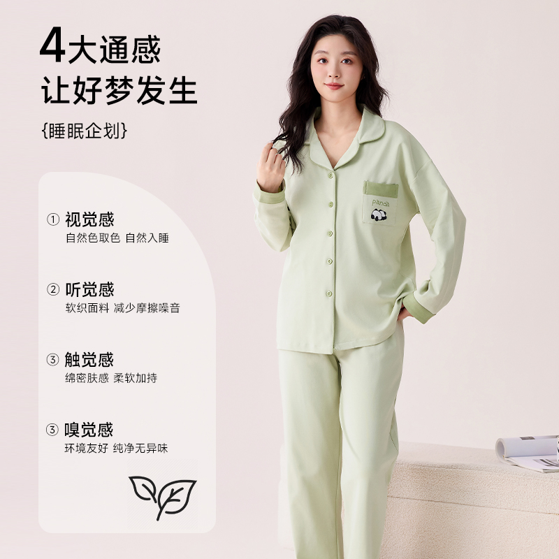开衫 纯棉长袖 大码 月子服家居服秋冬薄款 轩靓睡衣女春秋季 套装 秋款