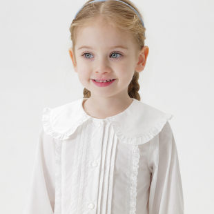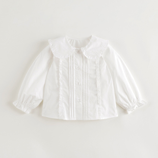 简约日系JK制服学院风纯棉长袖 女设计感小众白衬衣 牛津纺蓝色衬衫