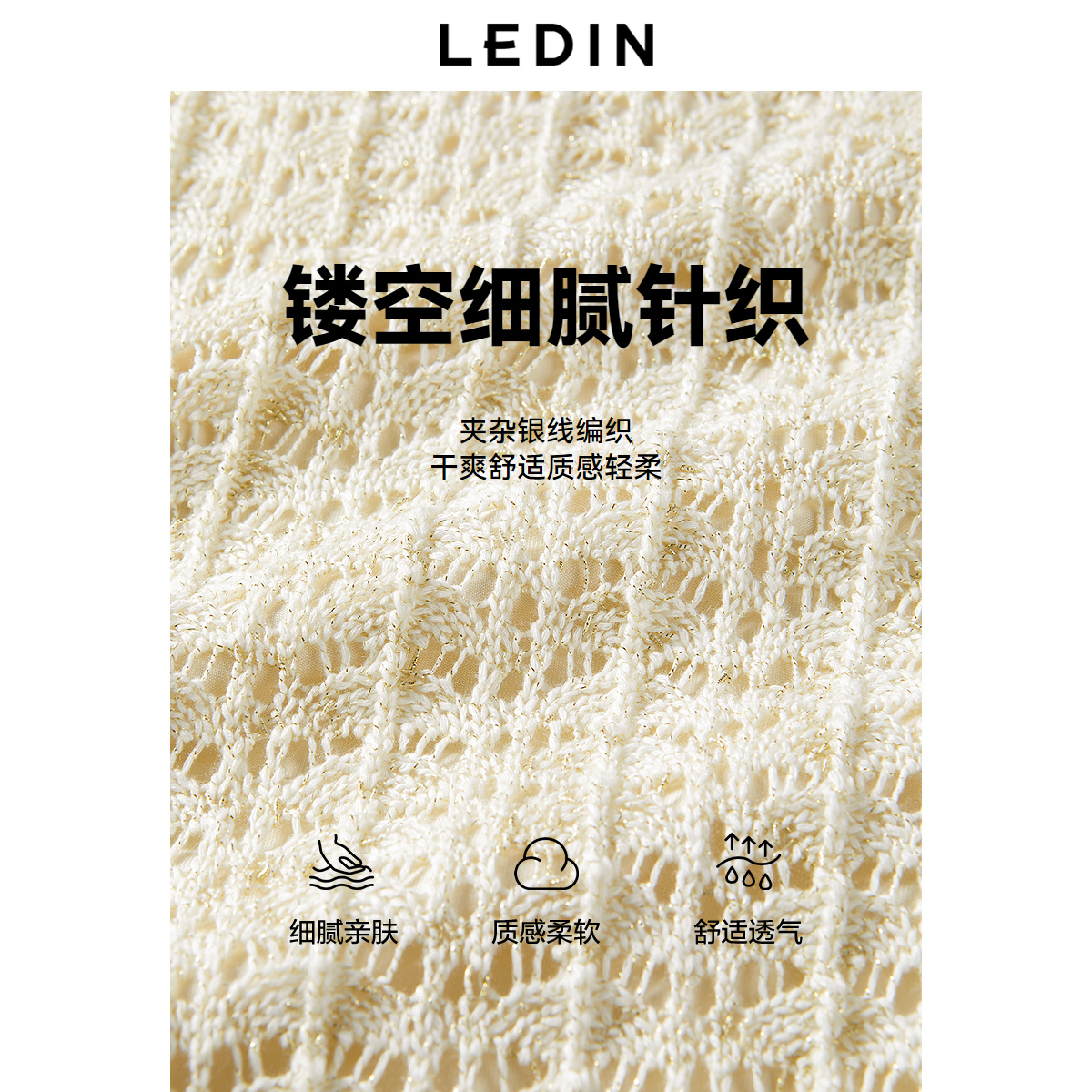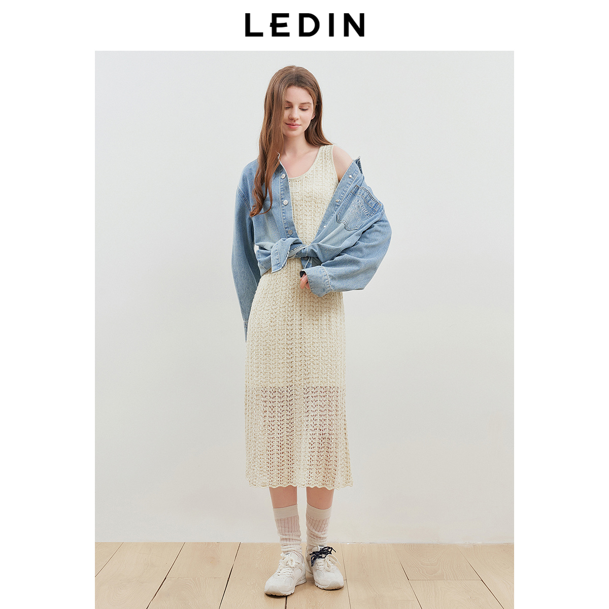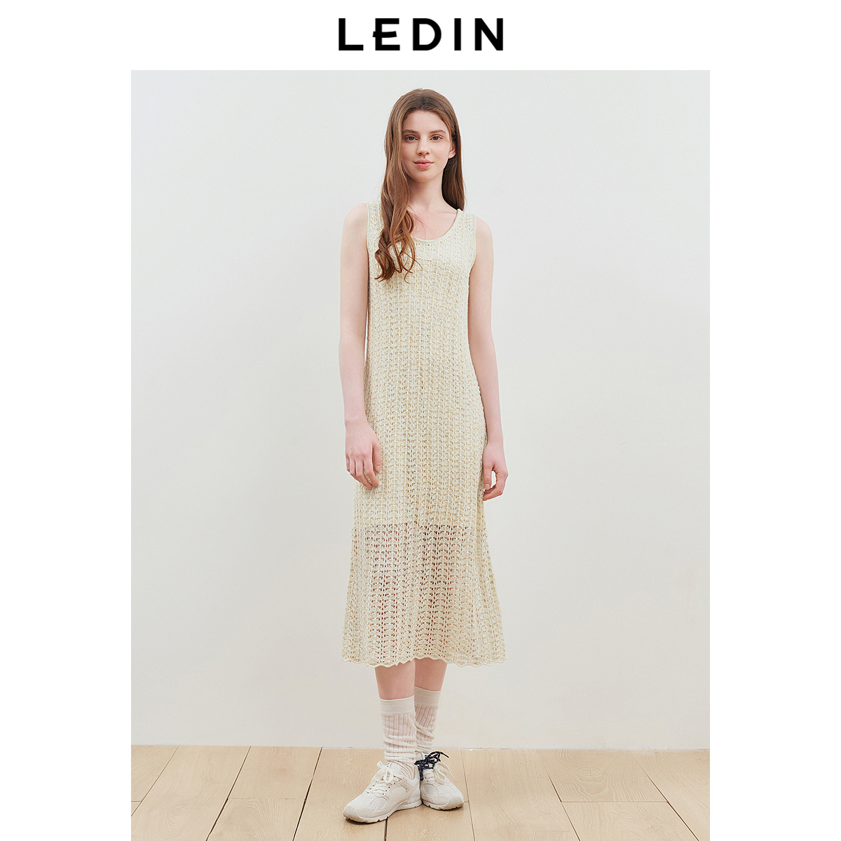 乐町V领针织长裙25年春新款 宽松包容透气背心裙高级感镂空连衣裙