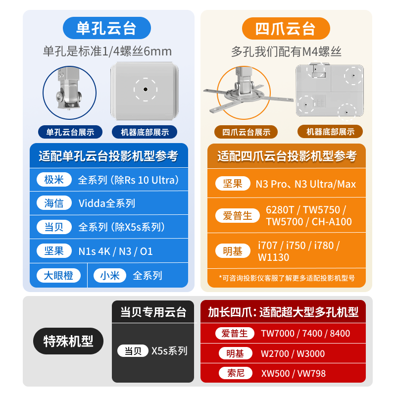 加厚铝合金 投影仪支架吊架壁挂可隐藏电源适配器极米坚果当贝海信爱普生小米投影机适用吊装 全品牌通用