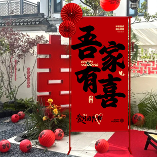 长条喜结婚专用喜字拉花农村婚房连体喜字贴大门装 饰红色婚礼挂饰