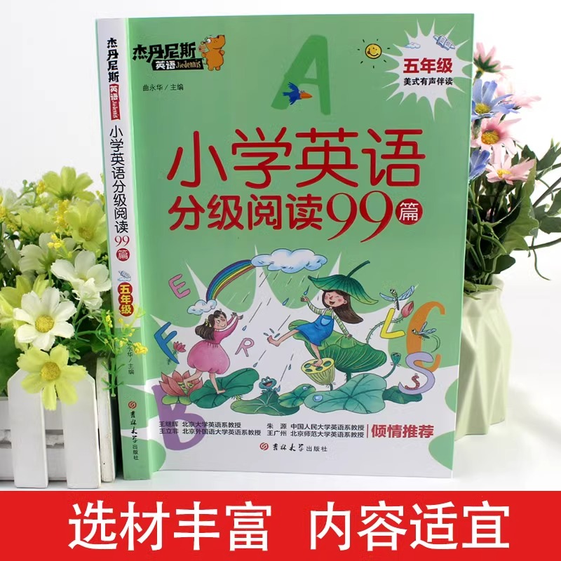 小学英语分级阅读99篇五年级美式 阶梯阅读理解听力强化训练基础教材同步单词语法小学生英语课外阅读强化训练书籍 有声伴读彩图版