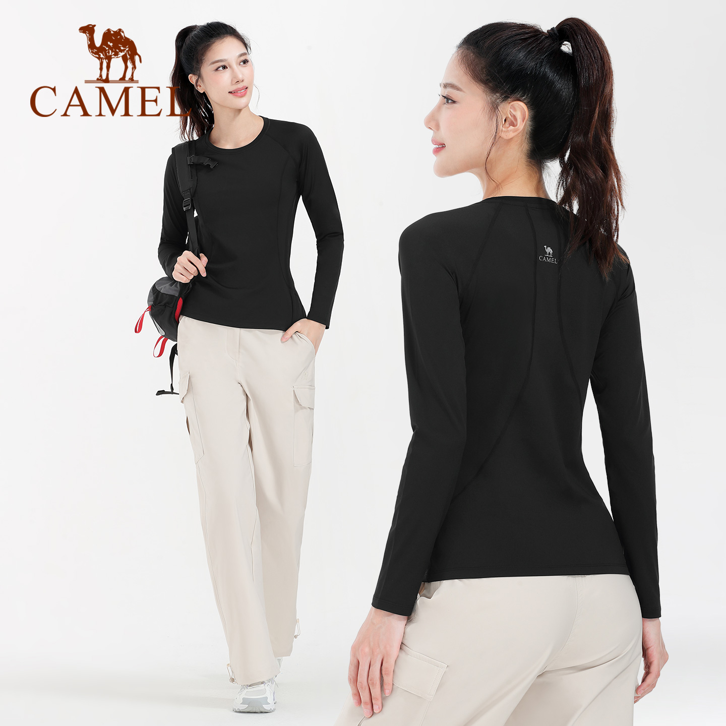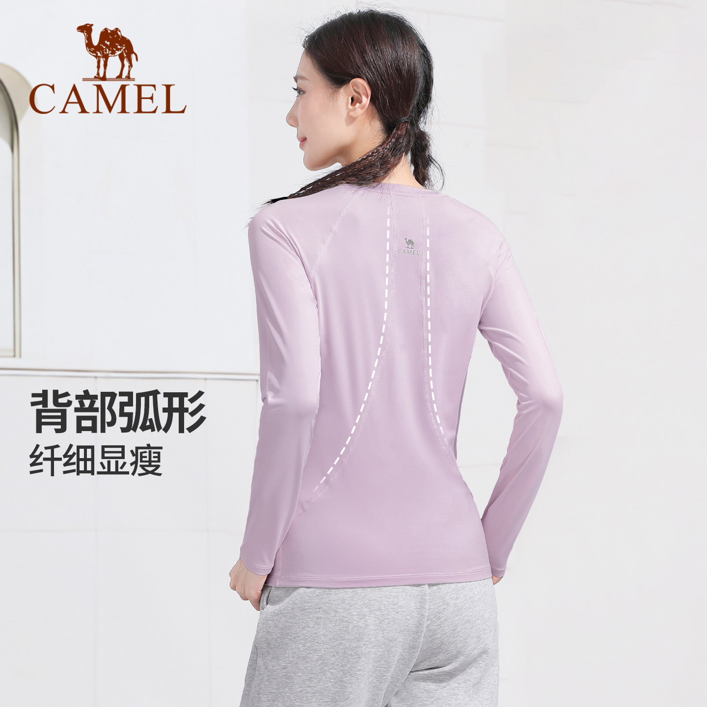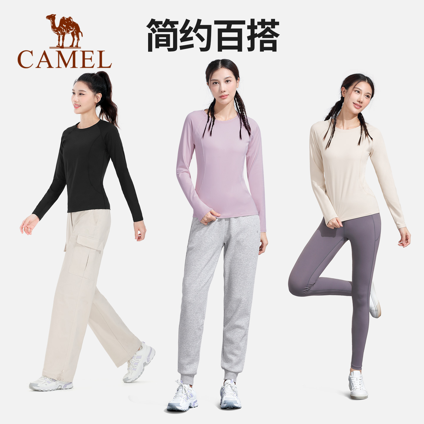 加绒休闲针织长袖 骆驼瑜伽T恤女2025年秋季 保暖运动上衣圆领修身