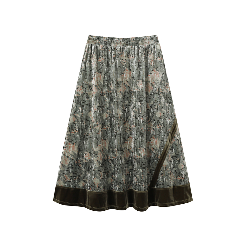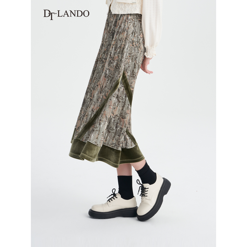气质显瘦中长款 春季 半身裙 垂感拼接丝绒A字裙 DTLANDO女装