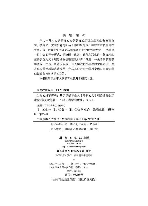 文学理论课程创新建设;外语社科大众专著;詹艾斌 基于卓越专业人才培养 书籍kx 拔节声响 生命