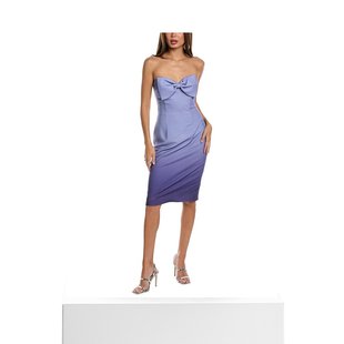 新款 朗姿 LIME莱茵千金风翻领撞色蝴蝶结飘带连衣裙鱼尾收腰修身