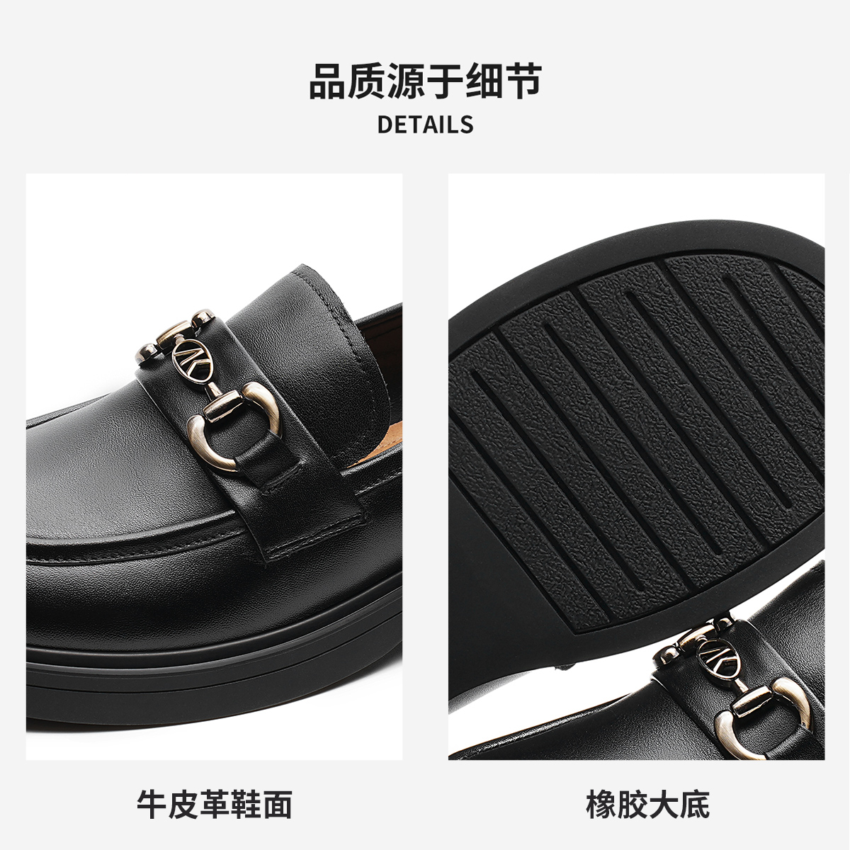 门店发货 套脚浅口单鞋 奥康女鞋 春秋复古英伦风黑色小皮鞋