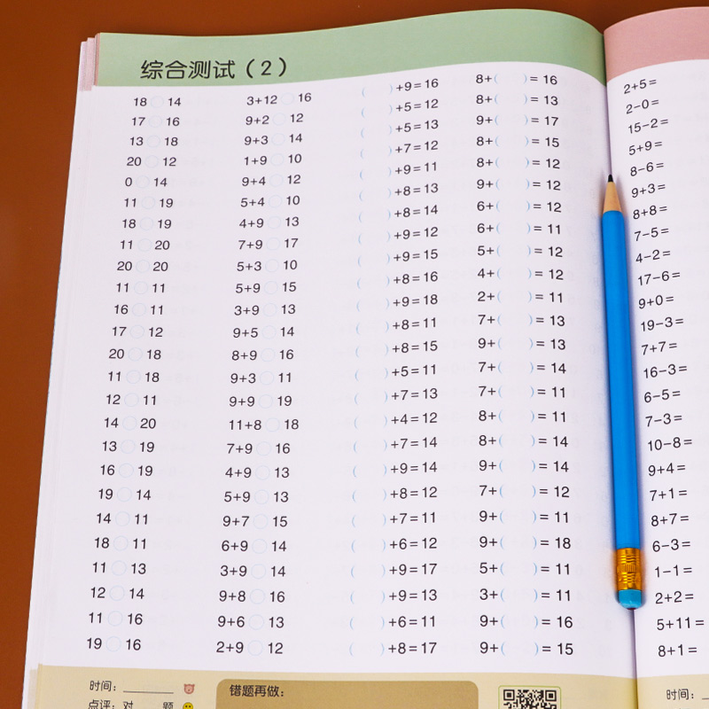钱赛湖编 小学生儿童课外专项训练书开明出版 每天100道口算题卡计时测评全横式 口算题卡10以内20以内加减法一年级上册尖子生彩绘版