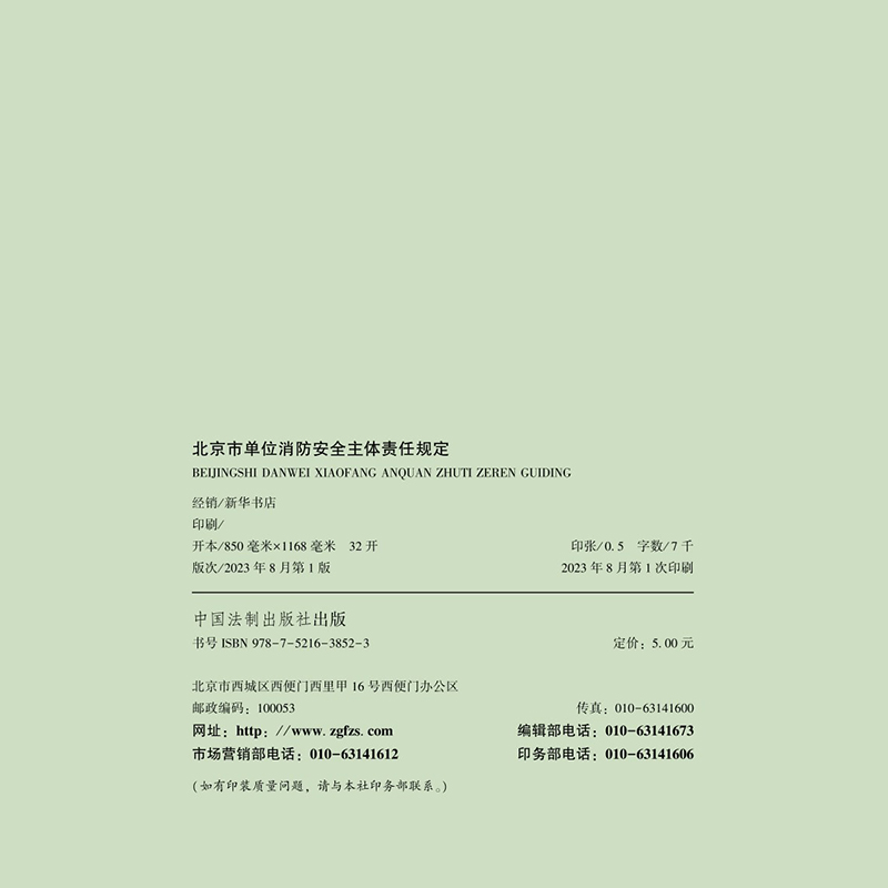 社 中国法制出版 9787521638523 北京市单位消防安全主体责任规定 2023新书