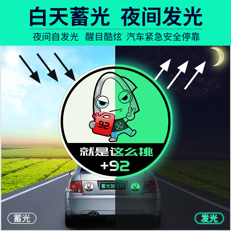 3M蓄光文字贴三角警示贴卡通贴夜光贴纸车身荧光创意贴纸划痕遮蔽