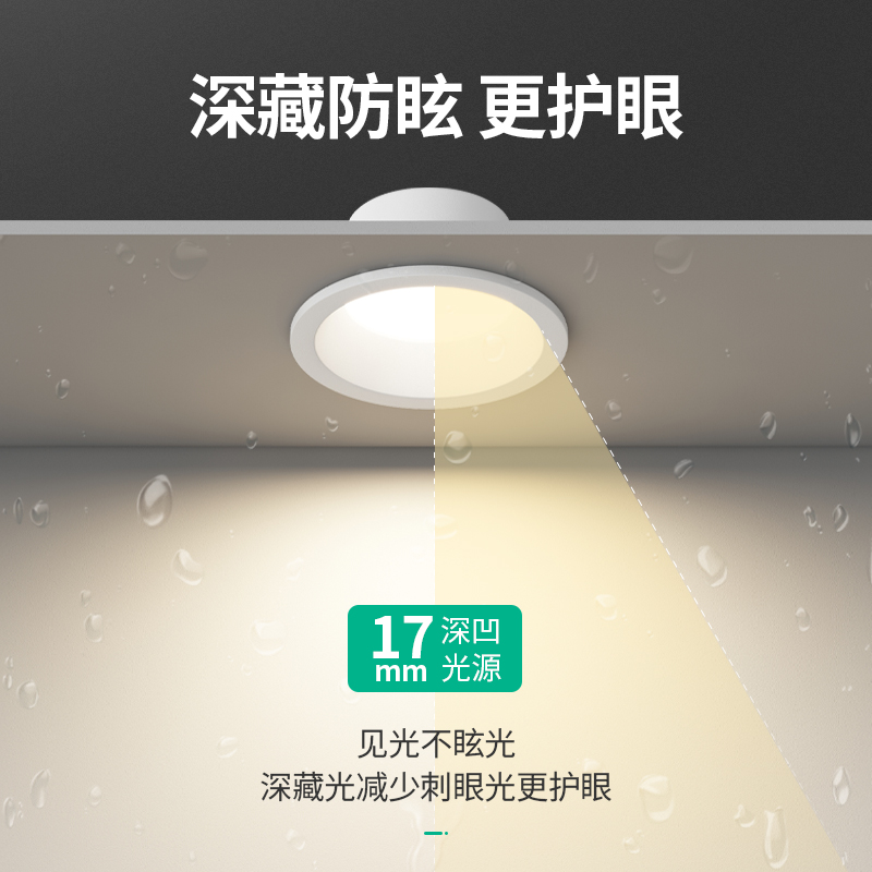 浴室防眩防水筒灯厨房卫生间防潮防雾淋浴房嵌入式 天花灯7.5公分