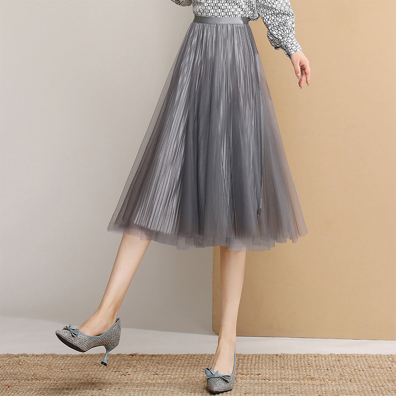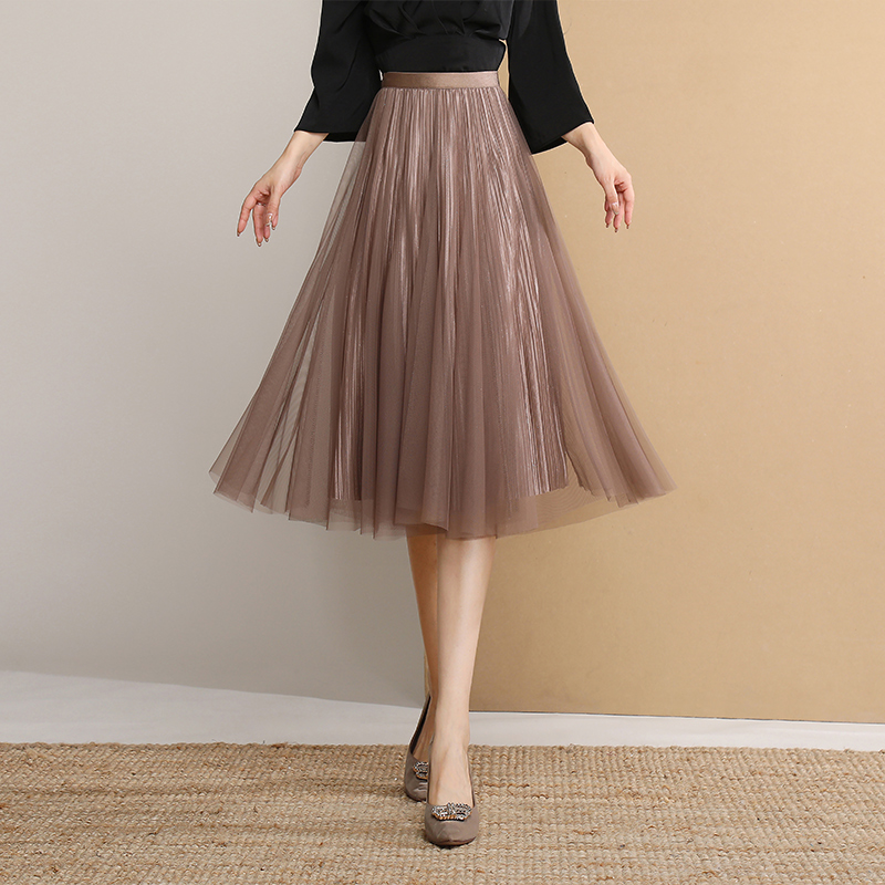 烫金网纱半身裙女秋冬开叉长裙HS0028 新中式 COCOBELLA 浮金碎影