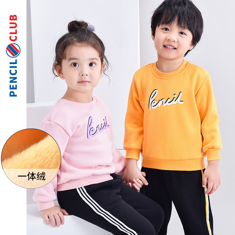 宝宝加绒T恤儿童加厚上衣 新款 铅笔俱乐部童装 女小童卫衣2025春装