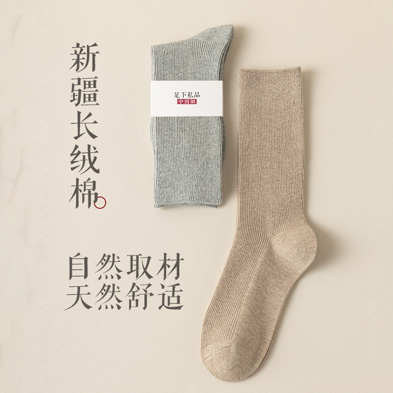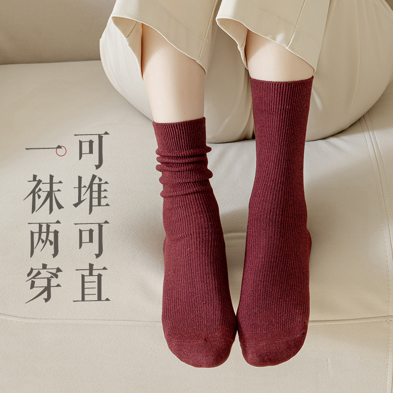 纯棉中筒袜子女堆堆袜春秋款 产后月子无骨长袜 黑色高筒全棉秋冬季