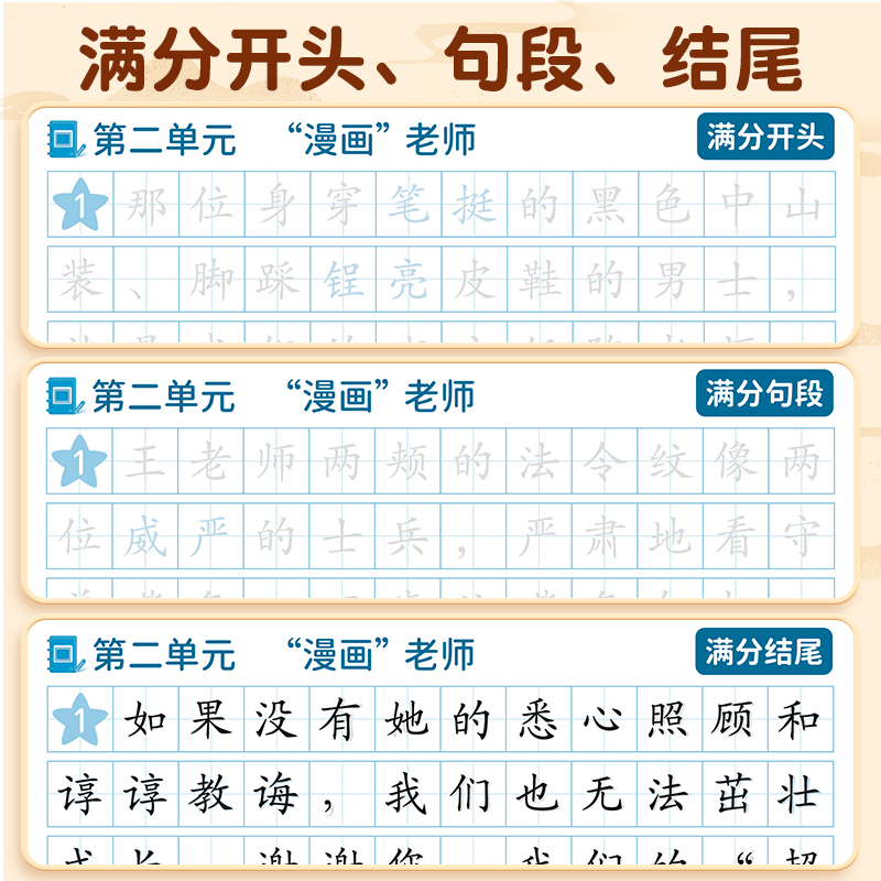 作文练字帖三年级满分作文练字帖好词好句小学生专用二升三暑假作文练字帖五感加词扩句修辞法钢笔临摹优美句子积累素材 斗半匠