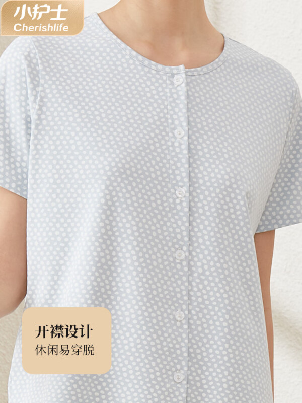中老年人套装 家居服宽松大码 夏 短袖 小护士睡衣女纯棉休闲外穿开衫