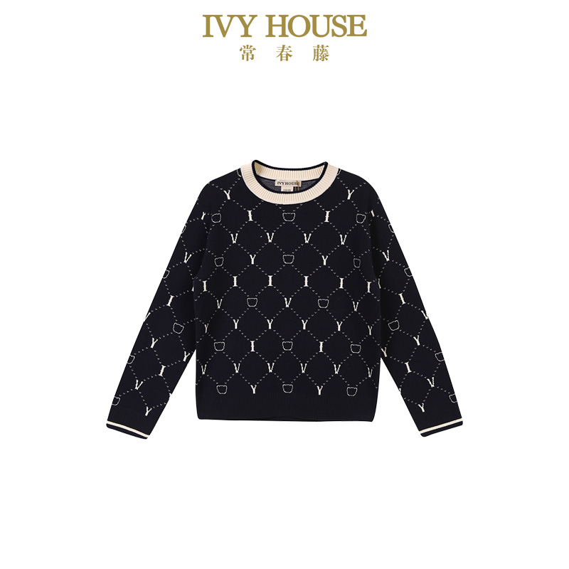 新款 女2025秋季 宽松圆领毛衣 针织开衫 飞鸟和新酒插肩袖