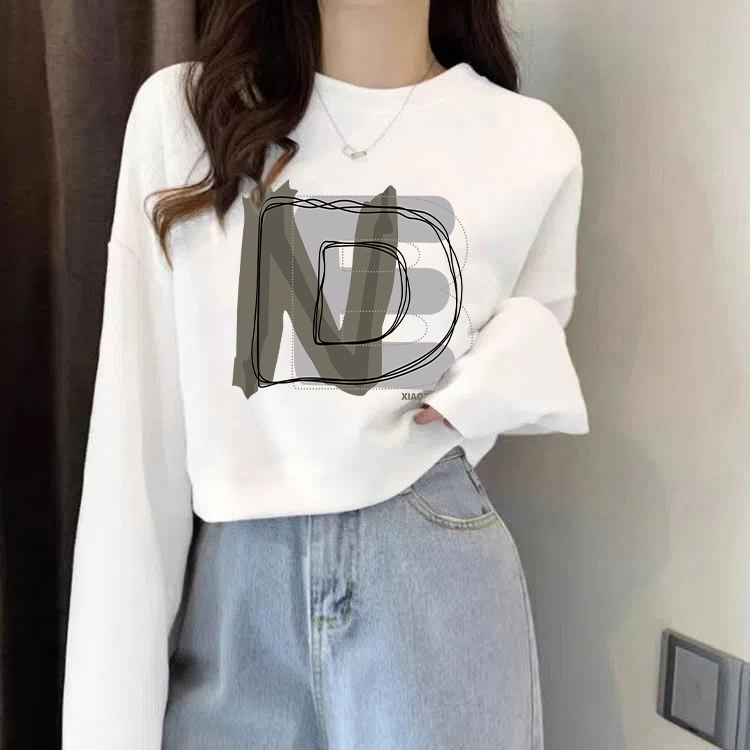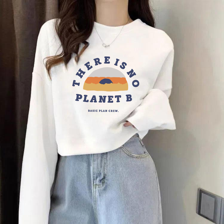 圆领秋冬宽松高腰上衣潮流 T恤女字母印花纯欲打底衫 纯棉短款 长袖