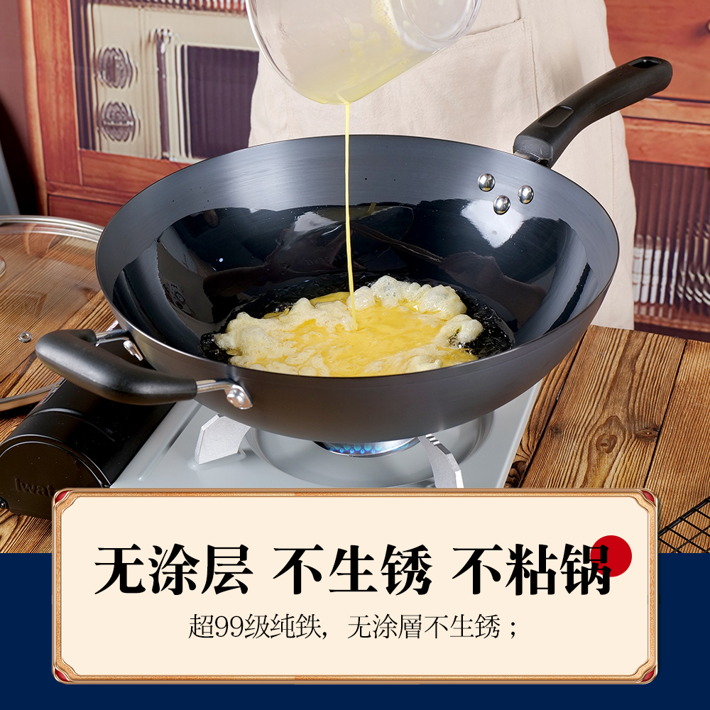 章丘炒菜锅传统铁锅官方旗舰老式 炒锅家用不粘锅无涂层燃气灶适用