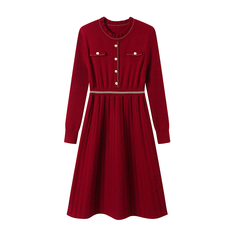轻熟法式 新款 绵羊毛桑蚕丝针织百褶长裙 Moda连衣裙女25春季 Vero