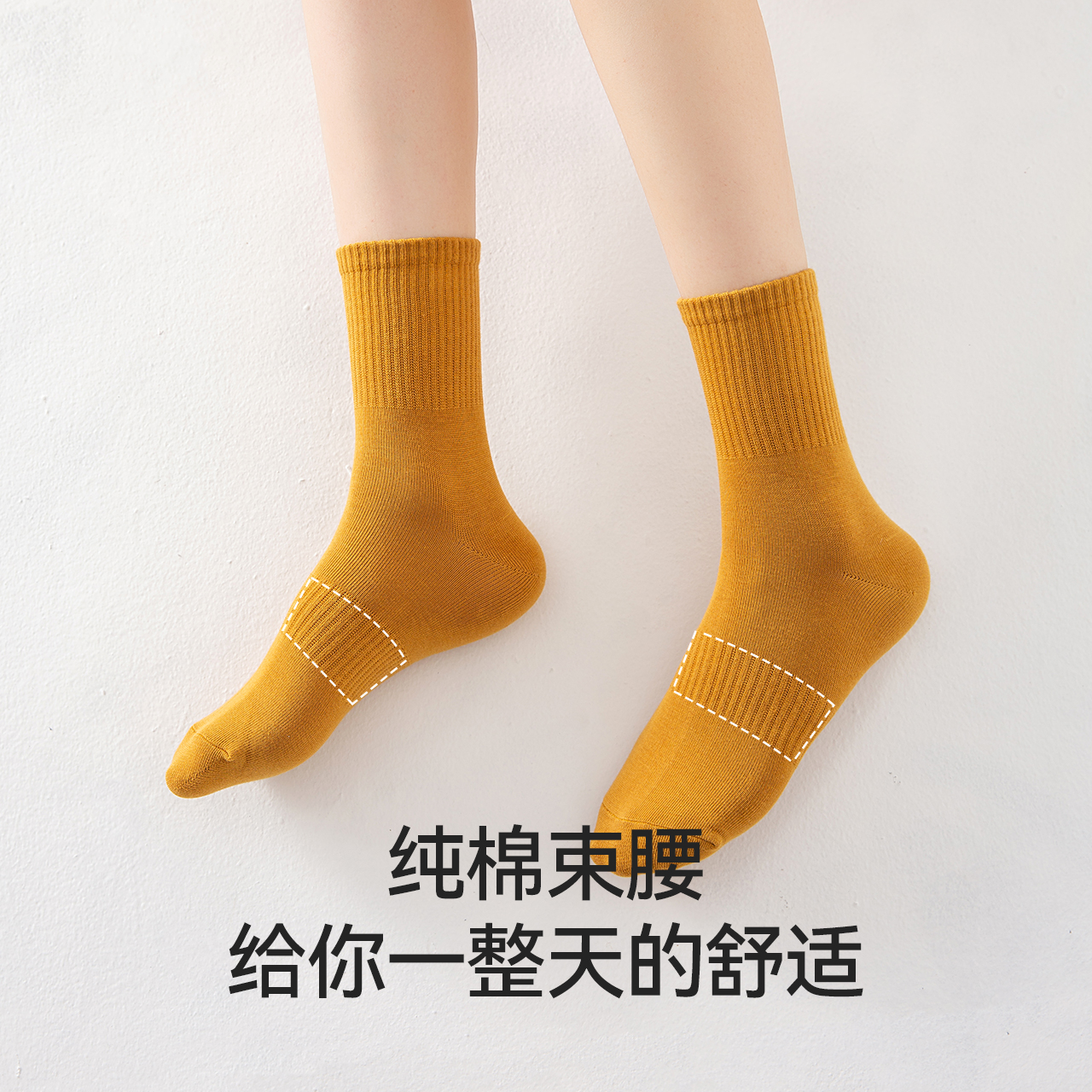 耐尔女士袜子秋季 棉袜百搭3A透气吸汗女士中筒袜黑色街头潮流长袜