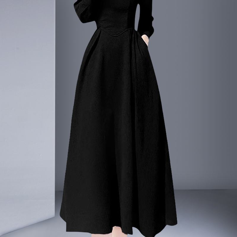 精致长袖 修身 连衣裙2025秋季 方领黑色赫本风长款 收腰显瘦 新款 法式