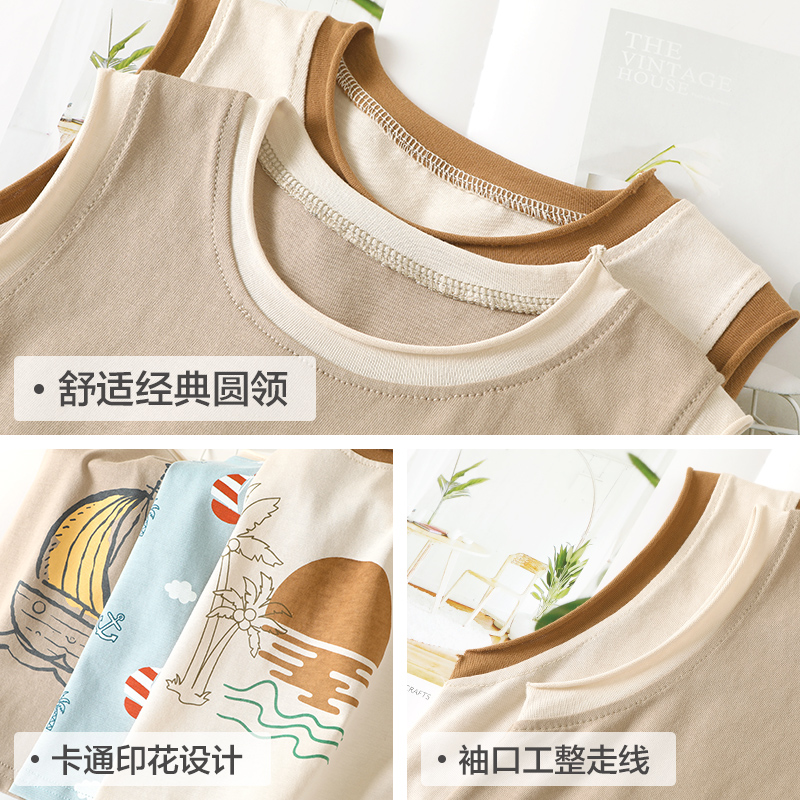 Y8424 男童儿童女童宝宝上衣夏季 婴儿衣服休闲印花背心无袖 T恤夏装