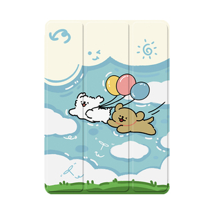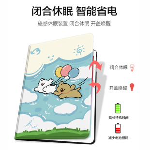 c5带笔槽v6畅享2气囊10.1 M5青春版 卡通线条狗华为matepad11适用pro10.8 10.4英寸平板壳荣耀7三折x6保护套M6