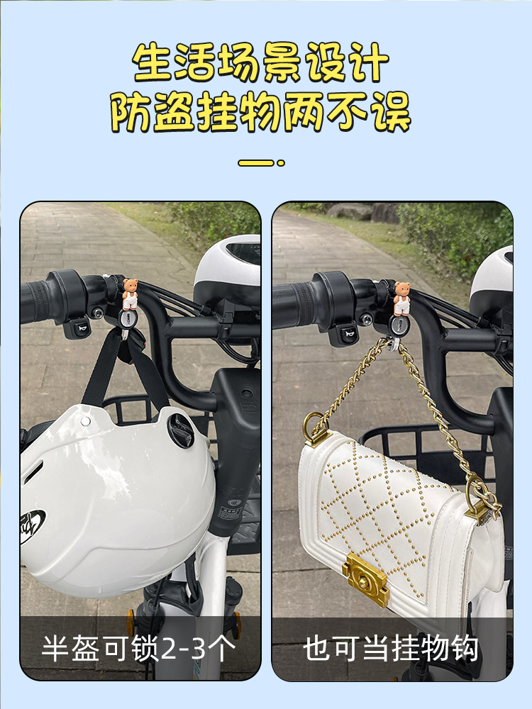 电动车头盔锁防盗固定神器电瓶自行车安全帽锁扣摩托车专用挂钩锁