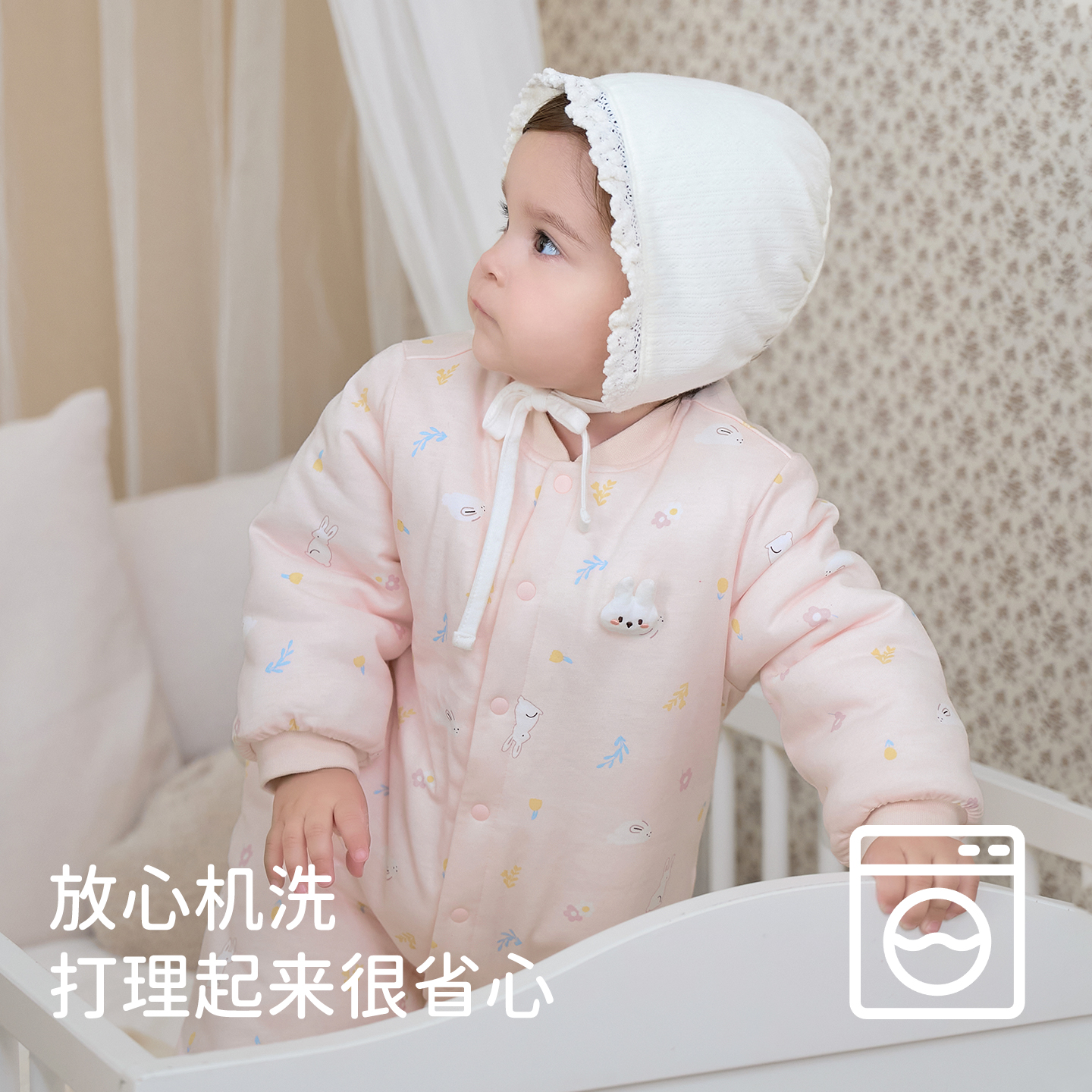 戴维贝拉新生儿男宝爬服保暖新款 女宝婴儿衣服棉服加厚连体衣 冬装