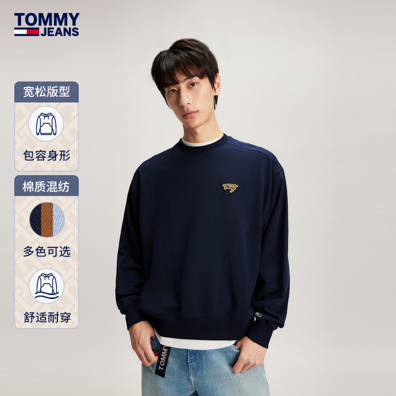 Tommy秋冬男女复古金色镶边签字体字母宽松美式 圆领T恤卫衣