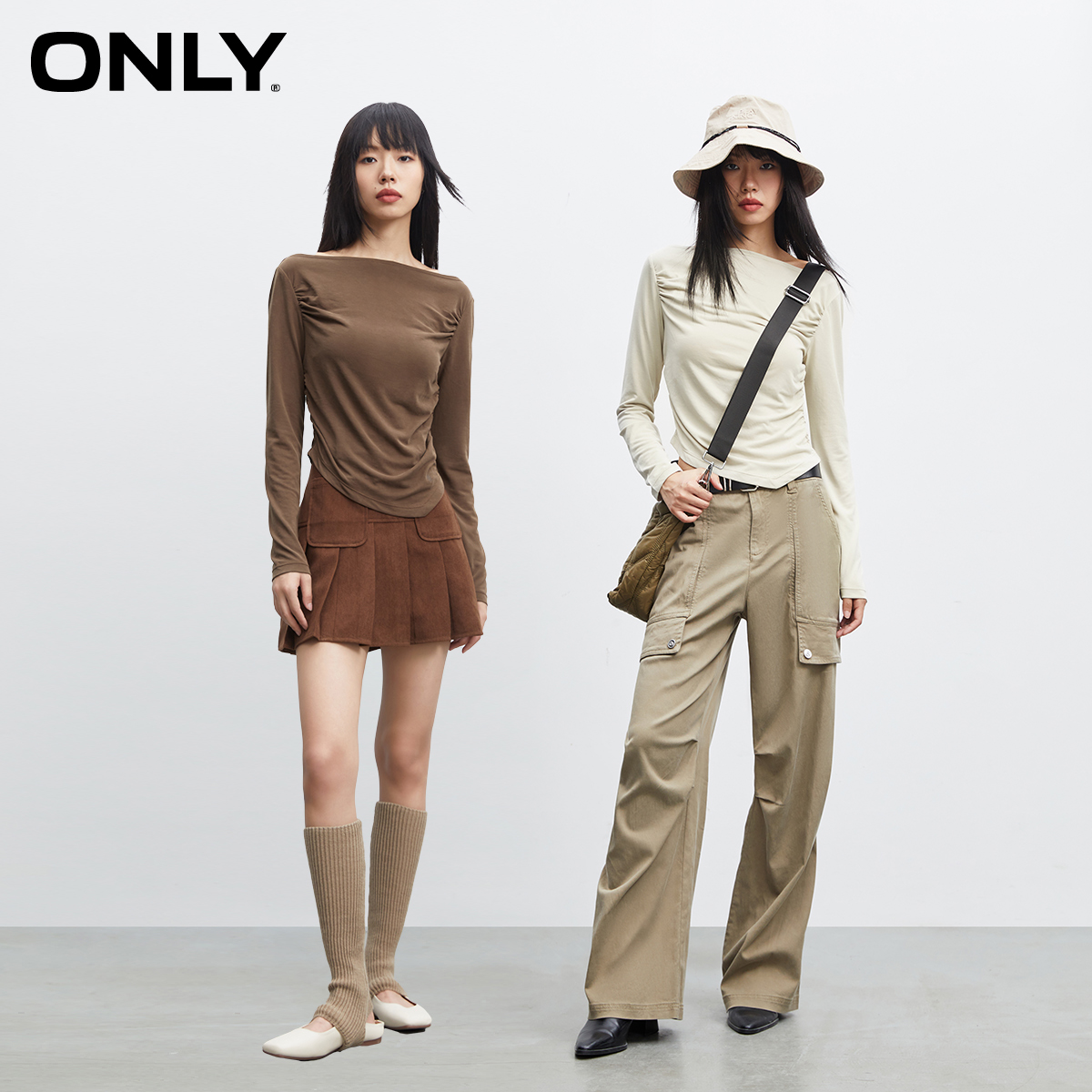 长袖 辣妹休闲百搭一字领修身 秋季 T恤女 ONLY奥莱