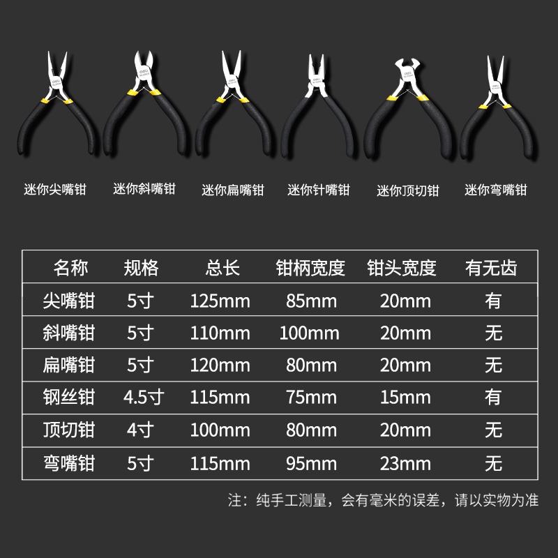 得力迷你钳子尖嘴钳多功能电工剥线老虎钳钢丝钳斜口钳DIY珠宝钳