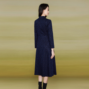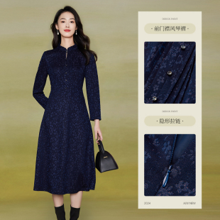黛玛诗新中式 复古小立领提花连衣裙女优雅气质中长裙 风裙子秋冬款