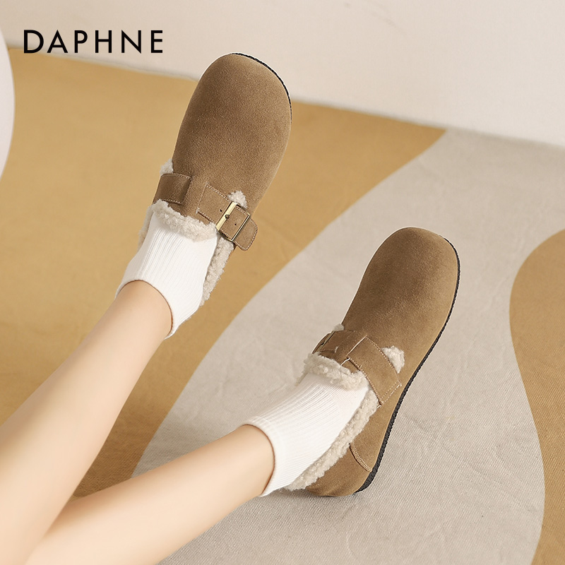 一脚蹬豆豆鞋 达芙妮加绒勃肯鞋 保暖东北棉鞋 女鞋 女 女秋冬2025新款