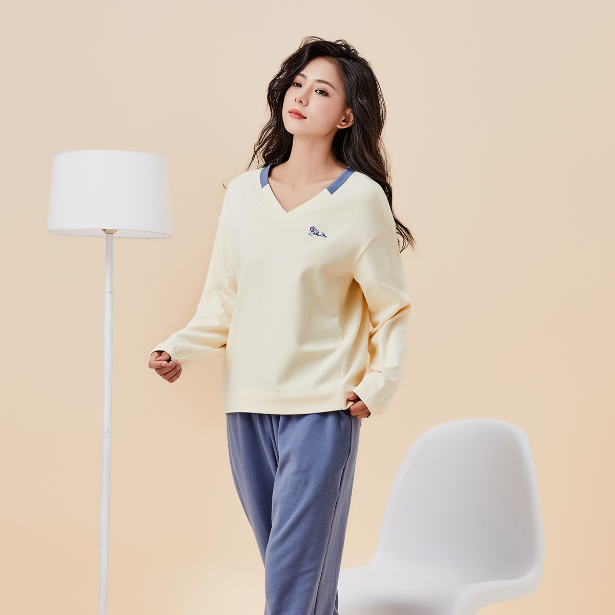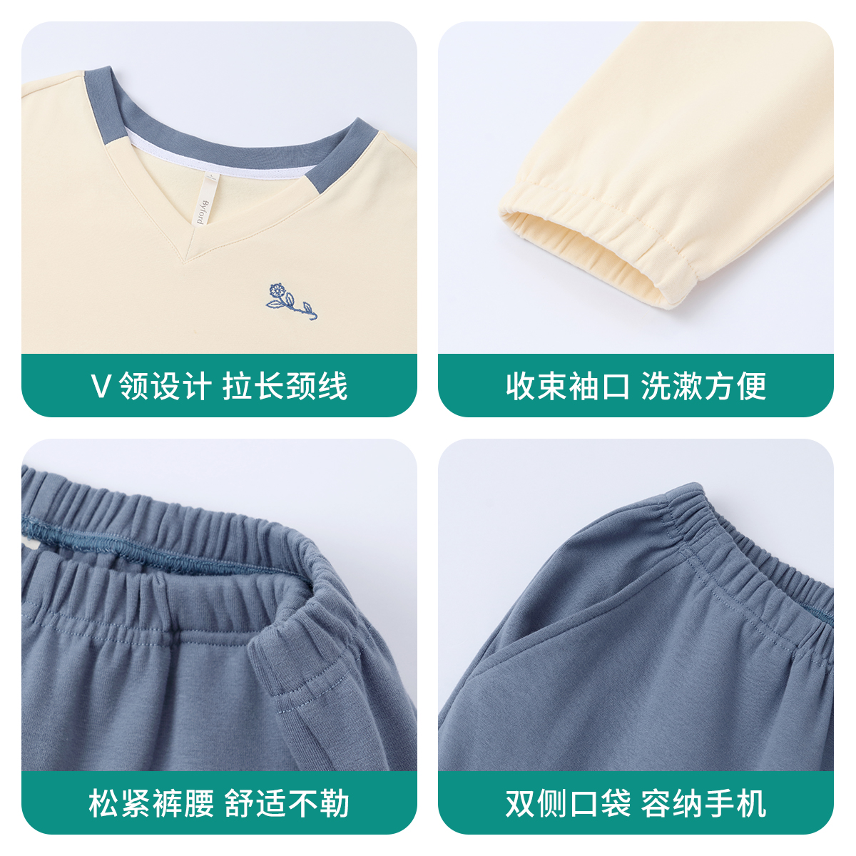 秋冬棉显瘦V领套头家居服休闲套装 亲肤磨毛 可外穿 百富 BYFORD