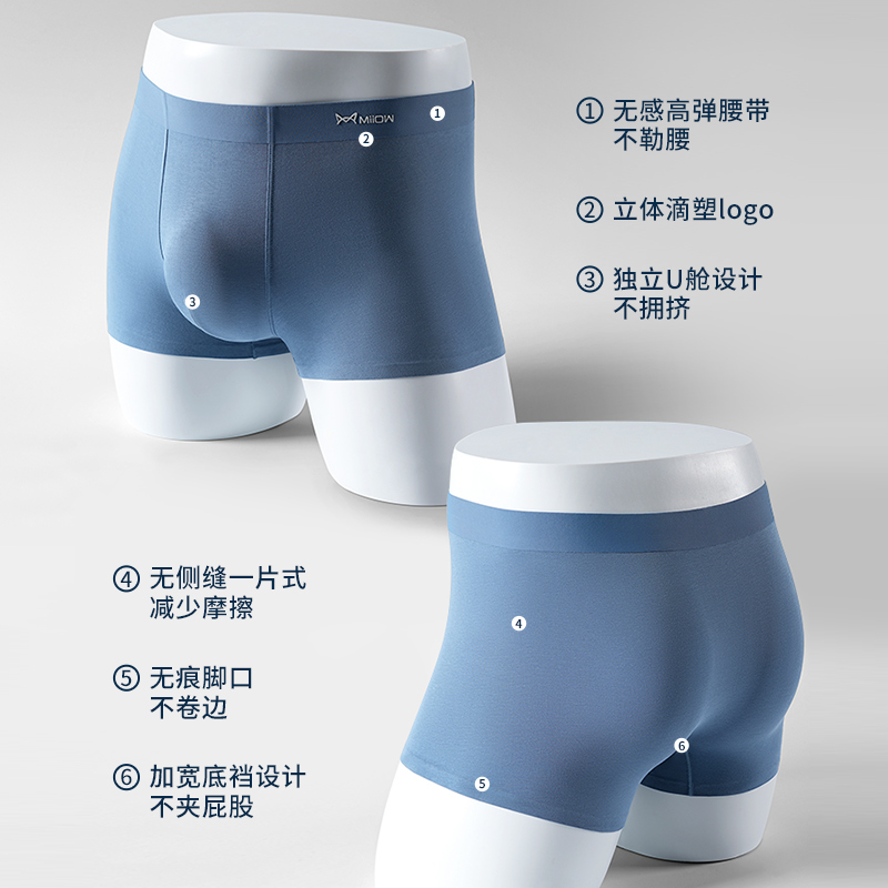 内裤 男生四角平角短裤 男款 青少年夏季 衩 冰丝无痕2025新款 猫人男士